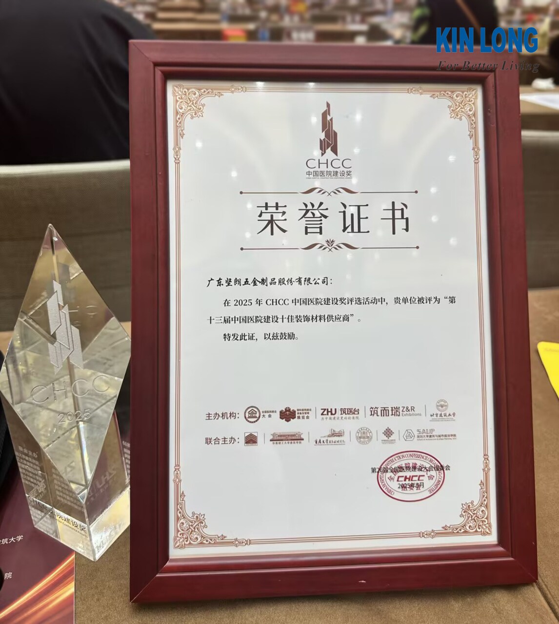 Kin Long vinh dự nhận giải thưởng “Top 10 Nhà cung cấp vật liệu trang trí xuất sắc tại Hội nghị Xây dựng Bệnh viện Trung Quốc lần thứ 13”